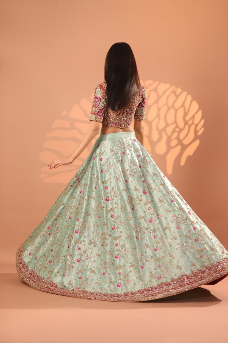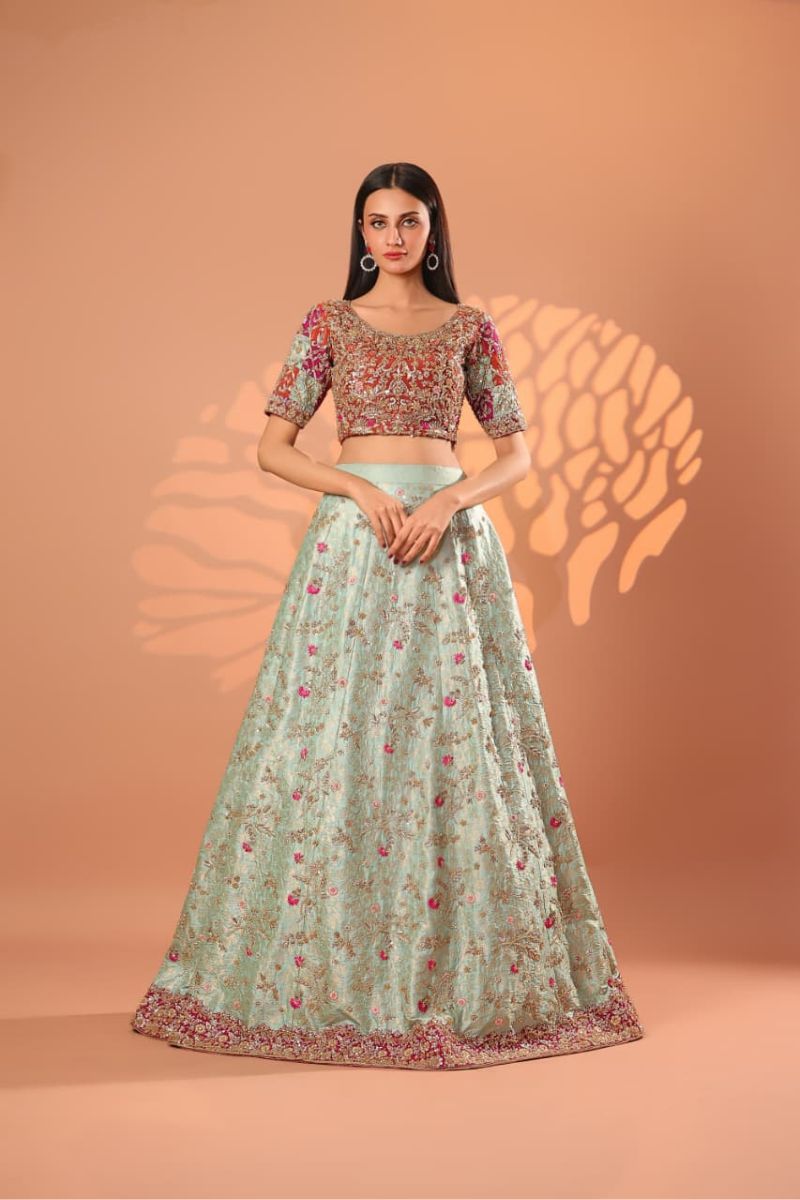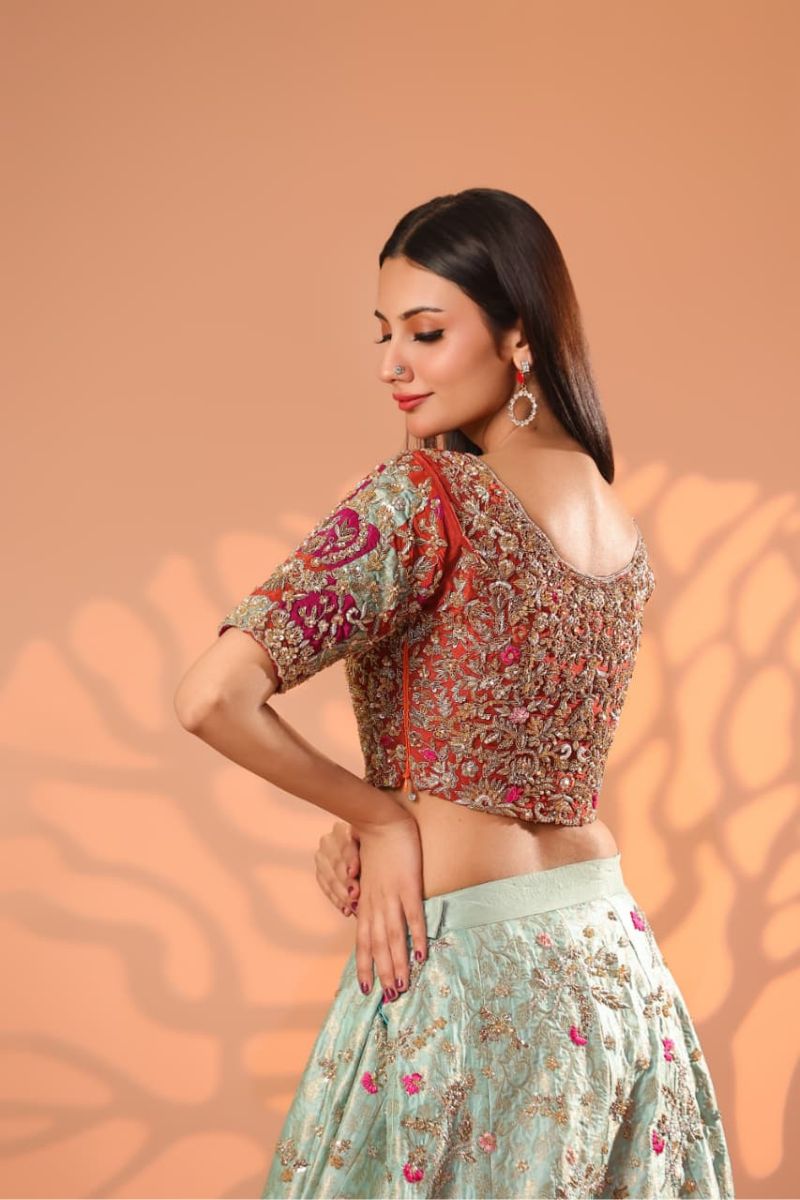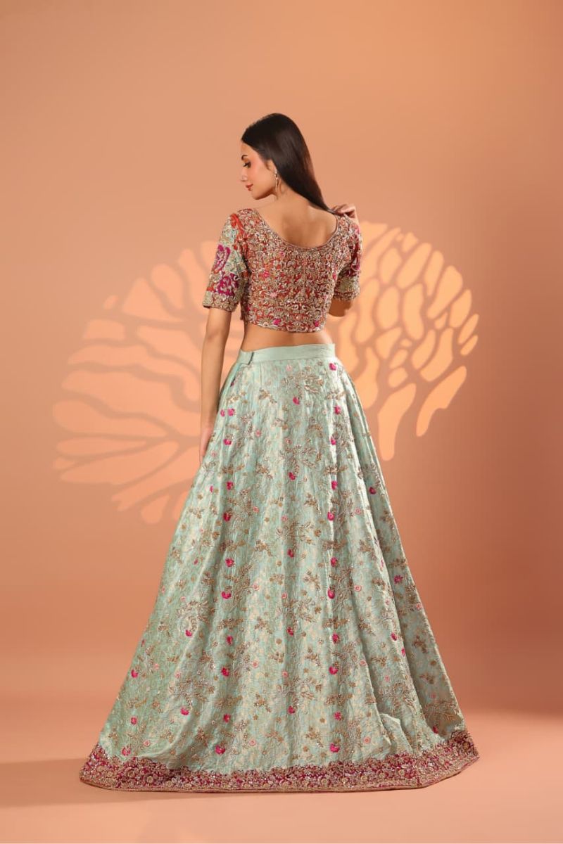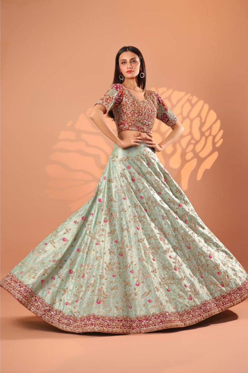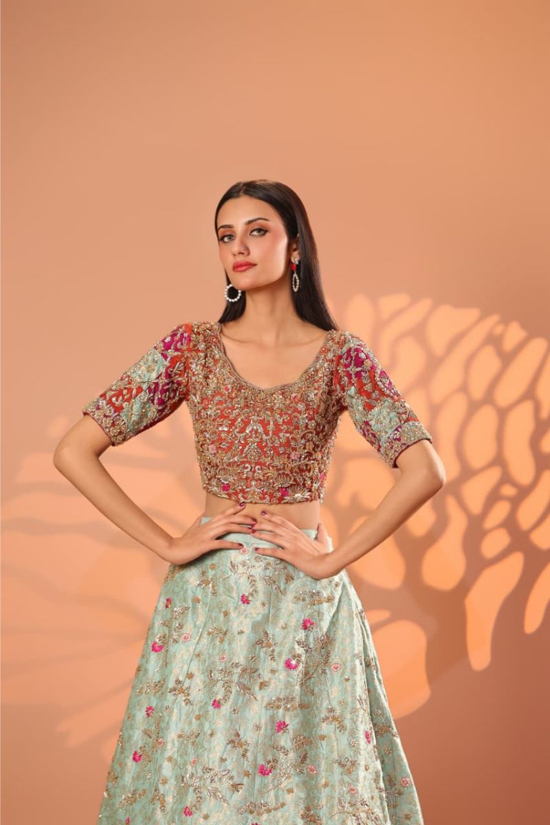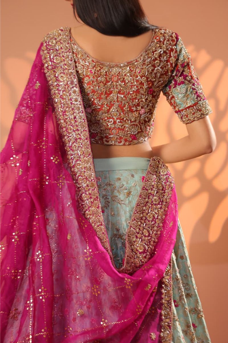 The Celeste Blush Bridal Gown is an exquisite vision of modern romance and timeless couture. Designed in a soft blush-champagne hue, this full-length gown is richly adorned with intricate silver-gold embroidery, delicate blush accents, and fine sequin detailing that creates a luminous, ethereal effect. The structured bodice flows seamlessly into a voluminous flared skirt, showcasing ornate motifs and impeccable craftsmanship throughout. Finished with sheer embellished sleeves and a gracefully detailed hem, Celeste Blush is perfect for nikkah ceremonies, receptions, or elegant bridal celebrations. Refined, graceful, and unforgettable this gown embodies true bridal luxury.